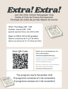 Good morning 4th and 5th grade families, We are inviting our 4th and 5th graders to sign up for the Newspaper Club by Tuesday, October 31st. Please contact Ms. Henderson…