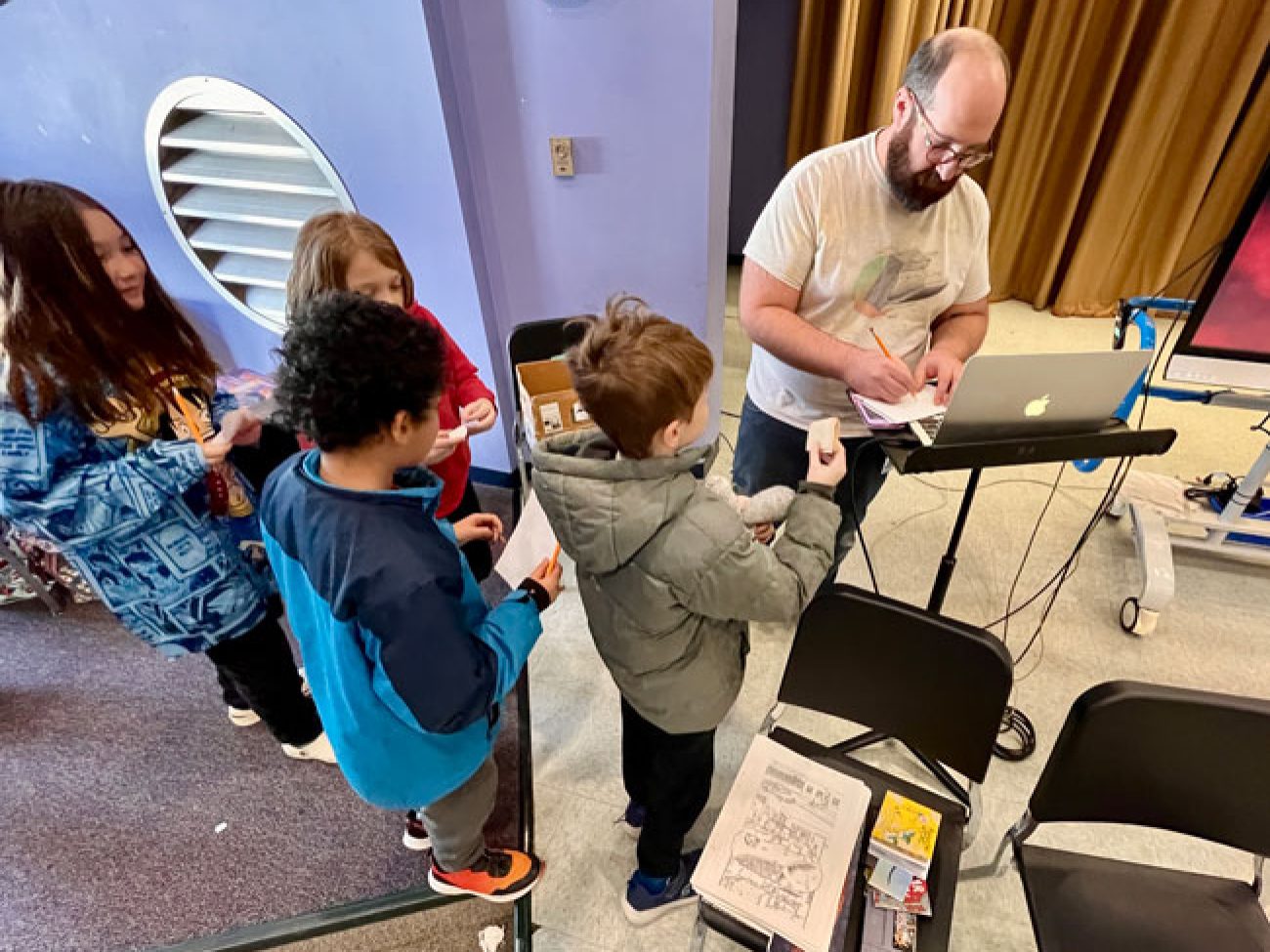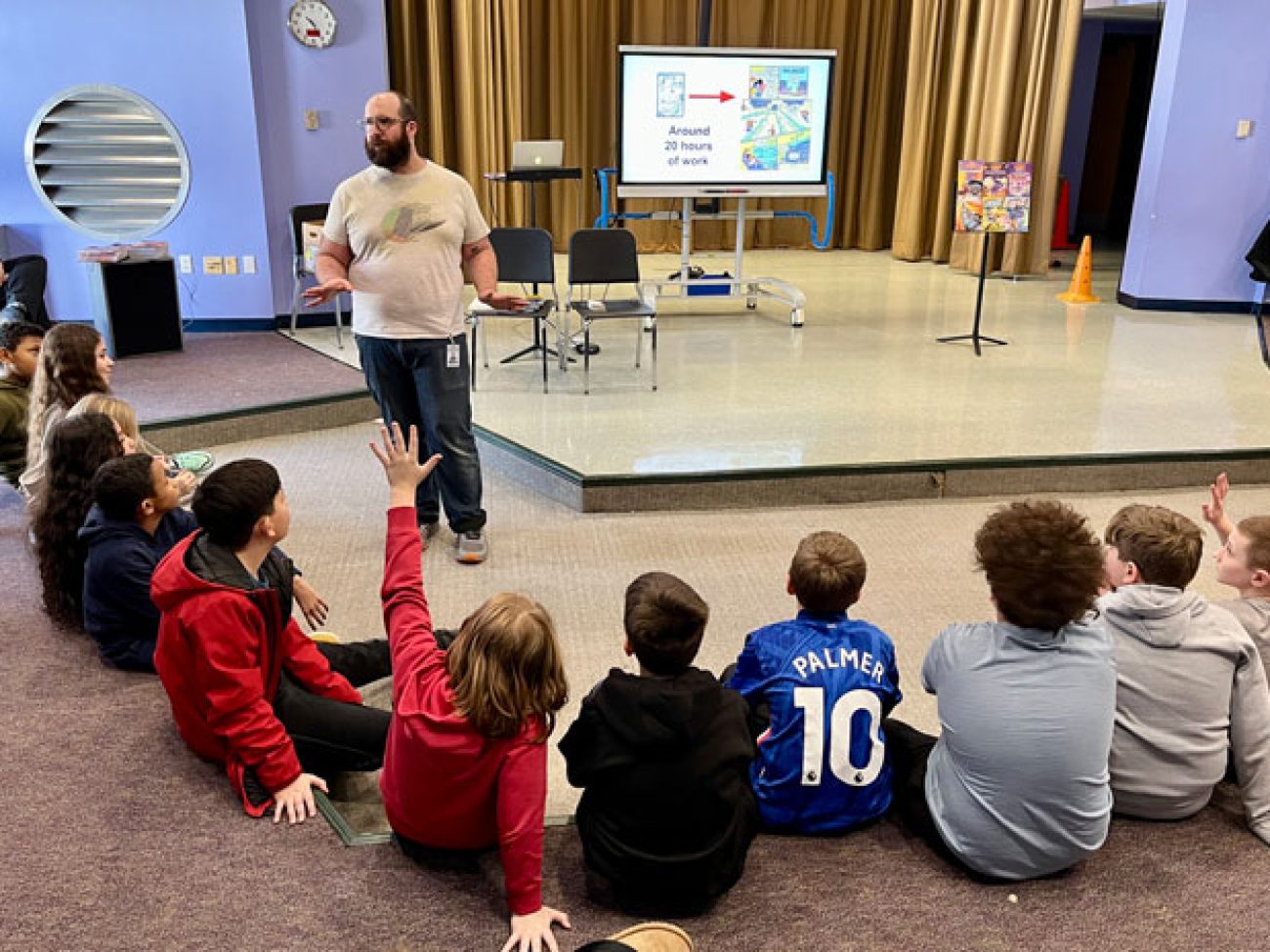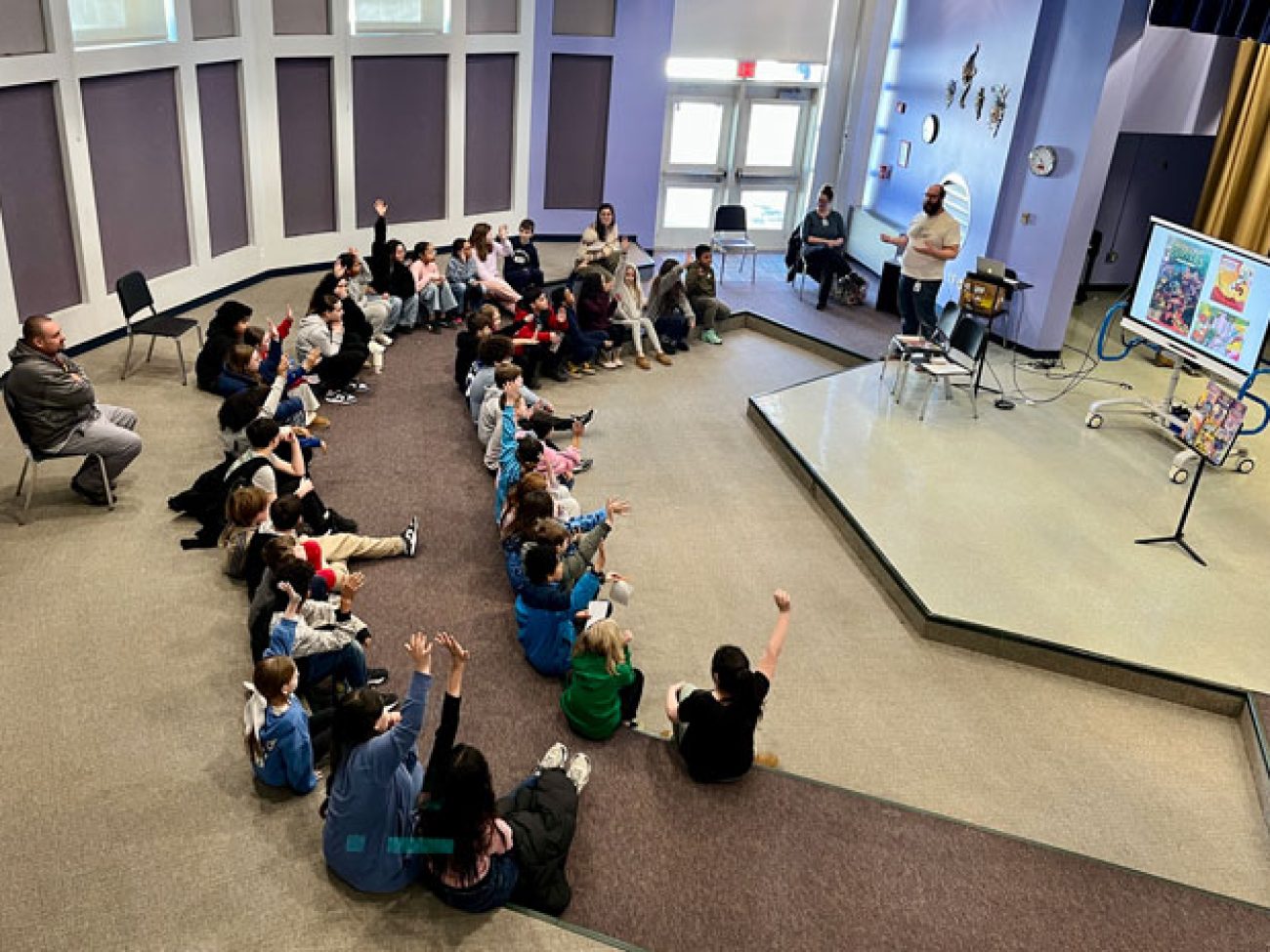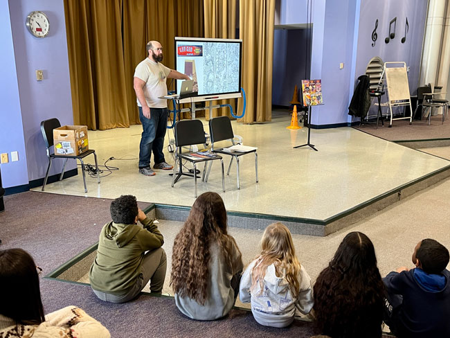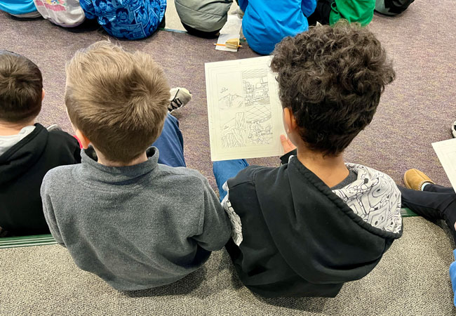 Scholars at both schools received a visit from Jon Chad, an illustrator, cartoonist and author of more than 25 learning-based children’s books, who detailed his creative process, from first pen to paper to the final edits.
