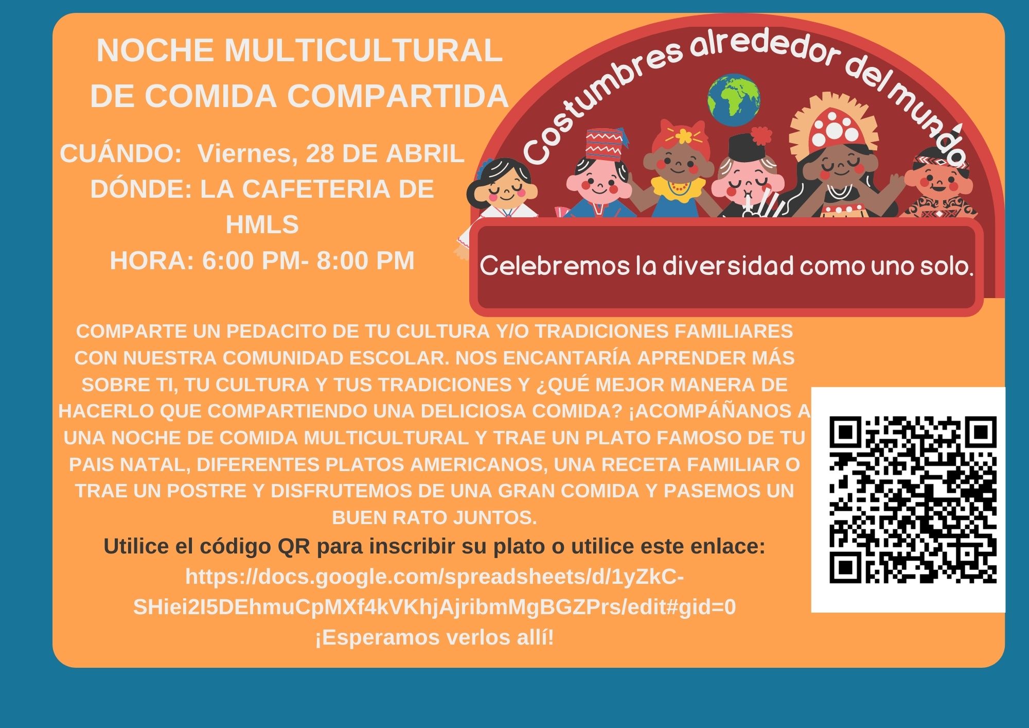 Reminder that this upcoming Friday, April 28th it’s our potluck for Multicultural Night (link for sign up sheet) from 6:00 PM- 8:00 PM. We hope to see you there!!
