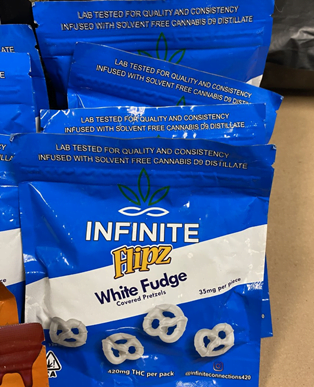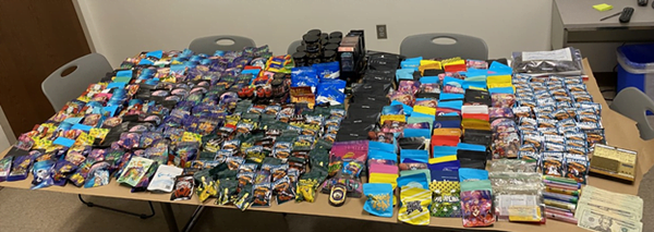 On Thursday, December 1st, detectives assigned to the SPD Criminal Investigation Division served an arrest and search warrant, resulting in the seizure of significant amounts of marijuana, THC products, psychedelic mushrooms, US currency, and drug paraphernalia. Many edible THC products were contained in packaging resembling candy with bright colors and cartoon-like characters. Some were even labeled as “Skittles” and “Starbuds” and looked almost identical to what would be found in any variety store. Individuals, students, parents, and schools should be aware that products containing marijuana or THC may be packaged in ways that could pass as normal candy or other foods.