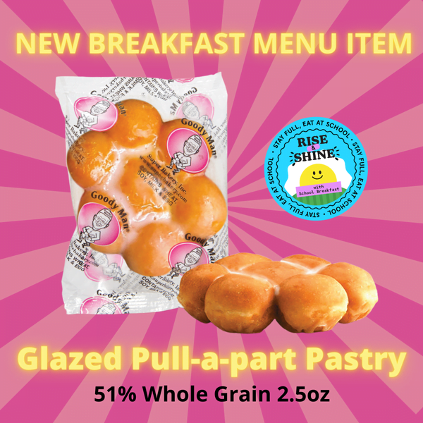 A delicious and sweet glazed pull-apart pastry will be introduced to our menus on 3/8 during National School Breakfast week! We are looking forward to the launch of this item and know that students throughout our schools will love it. Be on the lookout for more exciting plans, events and activities that we have for National School Breakfast week coming soon!